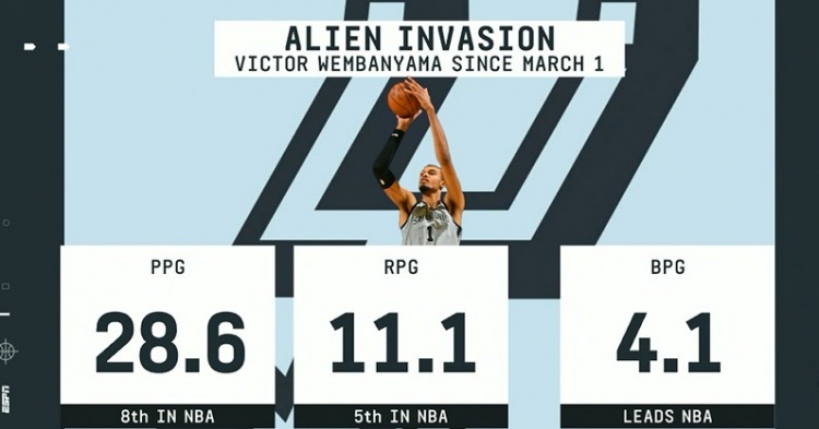 kaiyun-毁天灭地!3月以来文班场均4.1帽领跑全联盟 28.6分第8&11.1板第5